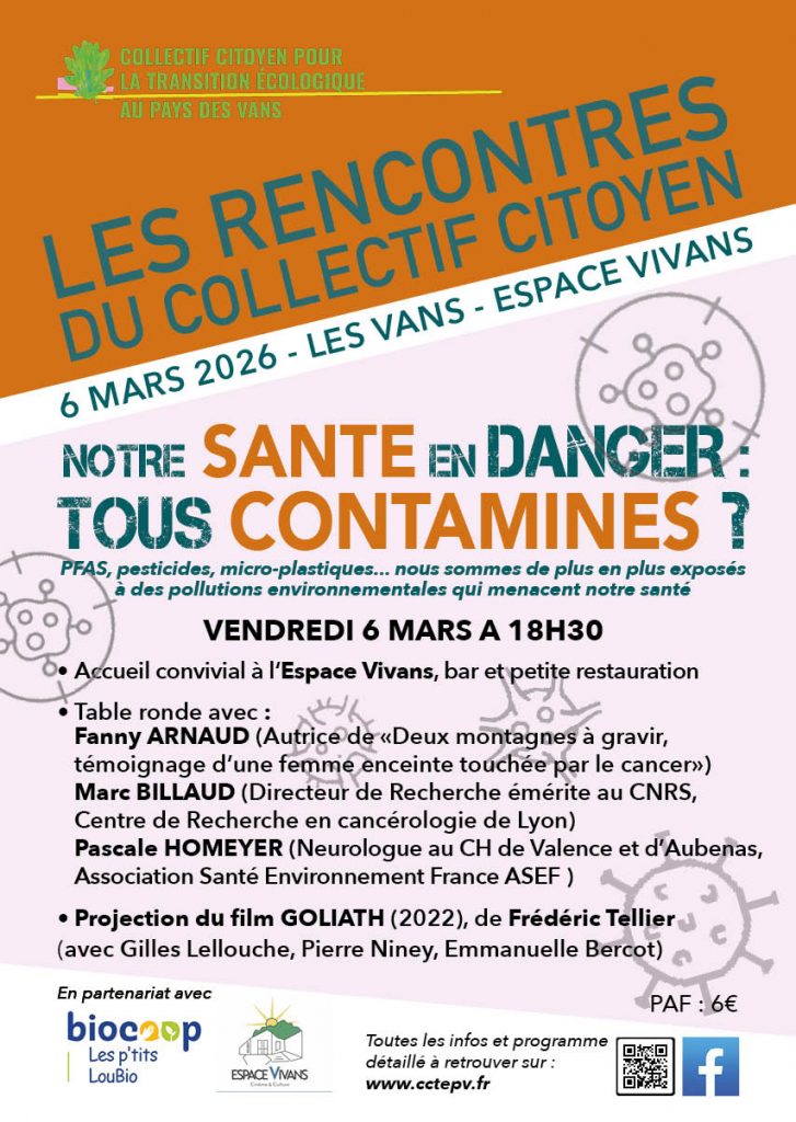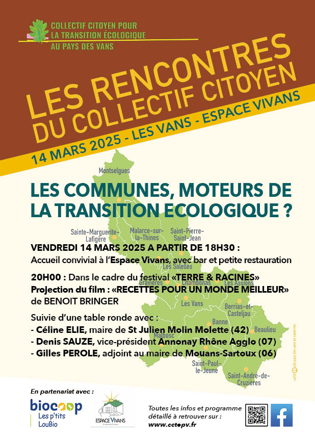 Les RENCONTRES 2026 du Collectif Citoyen auront lieu à l’Espace Vivans, aux Vans le 6 mars prochain à 18H30.