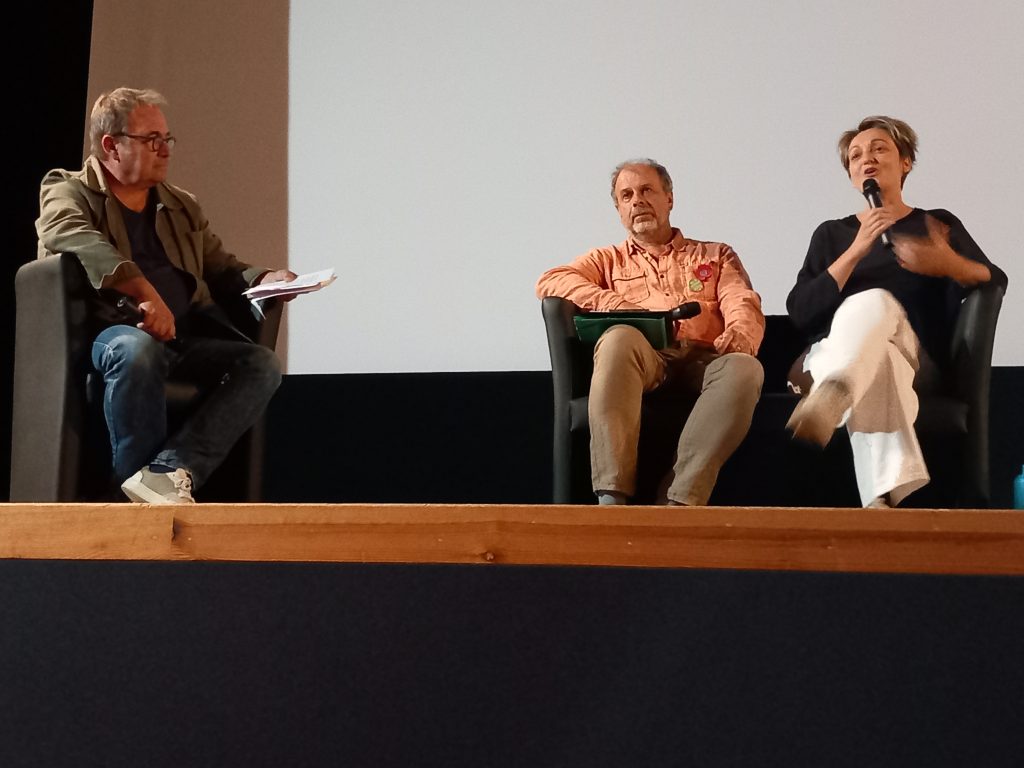 A l’initiative du cinéma Vivans et sur sa proposition, le Collectif Citoyen a organisé et animé le 25 septembre dernier une table ronde autour de la thématique du film « Le Vivant qui se défend« , documentaire de Vincent Verzat : les notions d’engagement et de militantisme, avec Nelly Pons, et Patrick Petit, qui remplaçait Maud Grard.